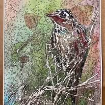 Heureusement que dans tout ce brouhaha d'incompréhension cérébrale, on y retrouve quand même un peu de structure. C'est à ce moment qu'on peut compter sur mon côté cartésien. La version plus analytique, plus mathématique de ma personnalité. Mon style géométrie cloisonnée est représenté par des personnages ou sujets décomposés et recomposés. Ils sont créés à partir d'une structure très calculée de lignes et de masses de couleurs, donnant comme résultat final une image, un sujet couvert de formes géométriques.